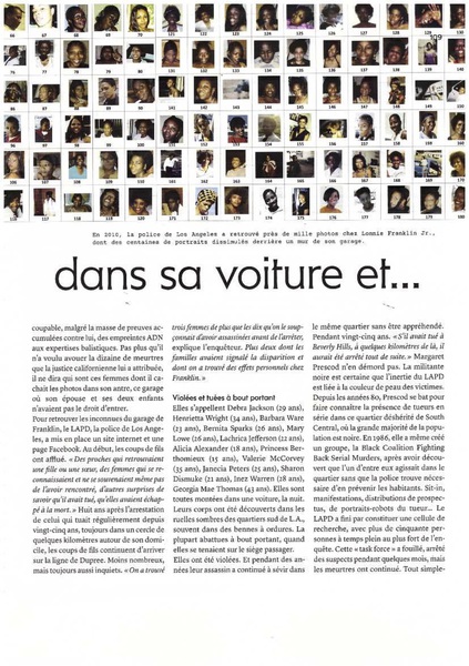 Lonnie Franklin Jr a plaidé non-coupable et refusé de s’exprimer. Il a versé des larmes uniquement quand son épouse jalouse a menacé de le quitter quand il a reçu en prison la visite d’une blonde journaliste. A l’issue de son procès, le mécanicien, père de deux enfants, a été reconnu coupable de dix assassinats. Chez lui ont été retrouvés des photos et documents officiels appartenant à cinq autres femmes, toujours portées disparues.