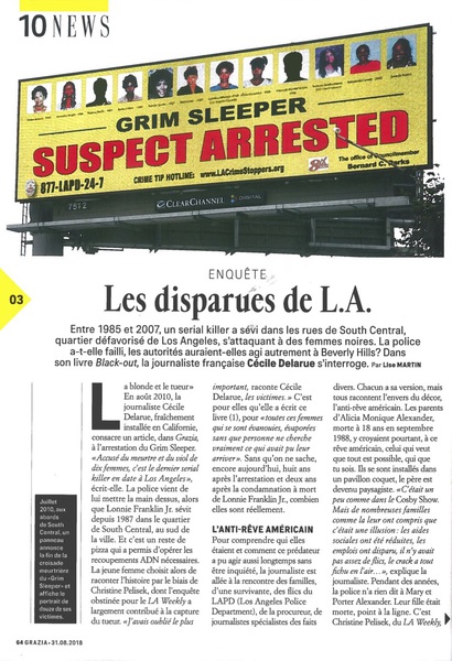 Huit ans après l’arrestation du tueur en série américain Lonnie David Franklin Jr, alias Grim Sleeper, Cécile Delarue revient sur cette histoire saisissante et terrifiante, dans son livre Black out, les disparues de South Central, cette fois-ci en prenant l’angle des victimes. Elle nous raconte les détails de son romanquête, à travers ses multiples rencontres avec les acteurs de l’enquête de l’époque.