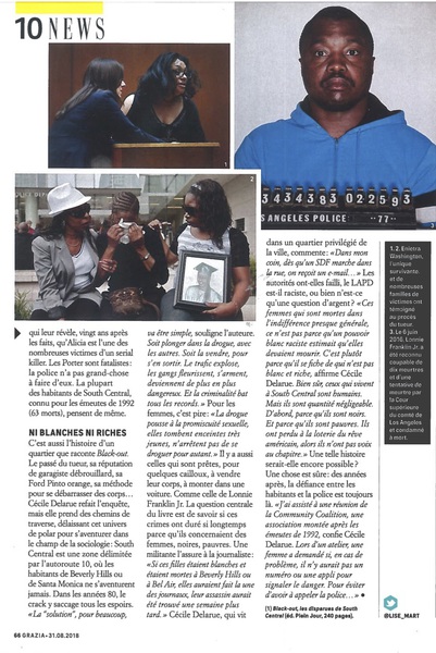 En même temps qu’elle rencontre des proches de victimes, Cécile Delarue s’intéresse aussi aux autres protagonistes de l’affaire : elle réussit à approcher certains des policiers qui ont tenté de rendre justice à toutes ces femmes, la magistrate qui a instruit l’affaire du « Grim Sleeper » accepte finalement de lui parler, et elle rencontre même une des survivantes de ce tueur en série. Et au fil de ses conversations, la journaliste se rend compte d’un racisme généralisé dans la société américaine, et qui semble aussi avoir cours au sein même de la police. « Black et Out. Comme si on disait aussi « Dehors les Noirs ». Comme si la femme noire devait disparaître. » Le quartier de South Central est en grande majorité peuplé de familles noires et pauvres, ce qui explique sans doute que le tueur ait pu sévir dans un même périmètre pendant plus de vingt ans…